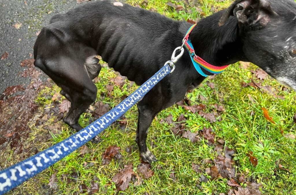 Starting with two new arrivals, Albus and Abbie, who have come to us through the wonderful people at South Wales Police. As you can see, Albus and Abbie have arrived in terrible condition that will require ongoing care to get them back to full strength. After being seized, along with 15 other dogs, they spent a week in the vets being treated for their various health problems caused by the obvious neglect they’ve suffered. The photos we have shared were taken a week after being under veterinary care. They’re now spending lots of time in the Hillcrest house with pyjamas, warm beds and gentle cuddles which is making these kind natured hounds feel better already, and the other 15 dogs have been safely taken in by other rescues. Meanwhile, the police are embarking on a prosecution.